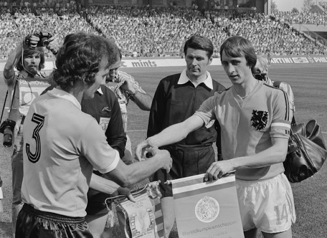 Krol; Jansen, Neeskens e Van Hanegem; Rep, Cruyff e Rensenbrink.